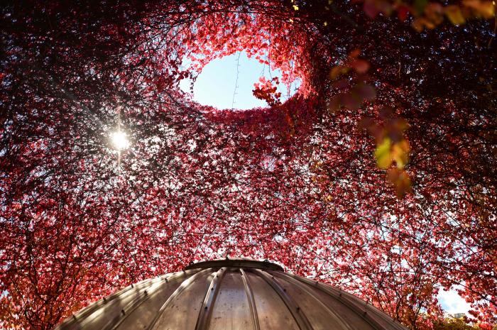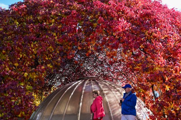 近日,波兰华沙大学的屋顶花园秋色渐浓,吸引人们前来参观游览。