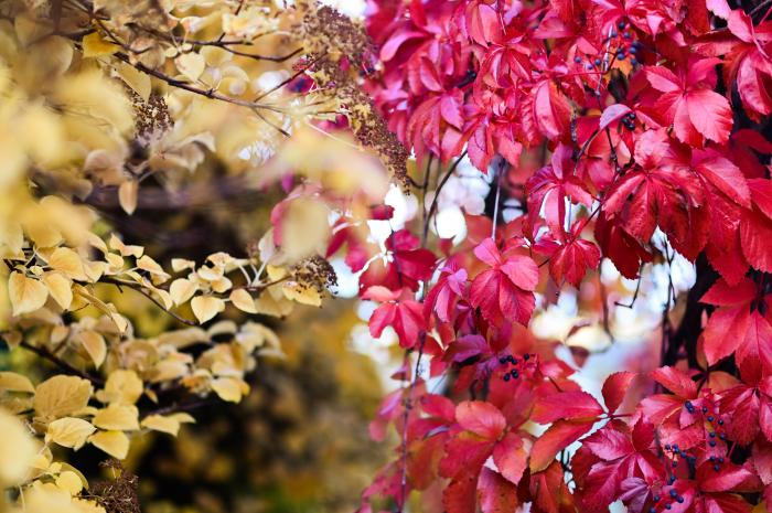 这是10月13日在波兰华沙大学屋顶花园拍摄的秋叶。