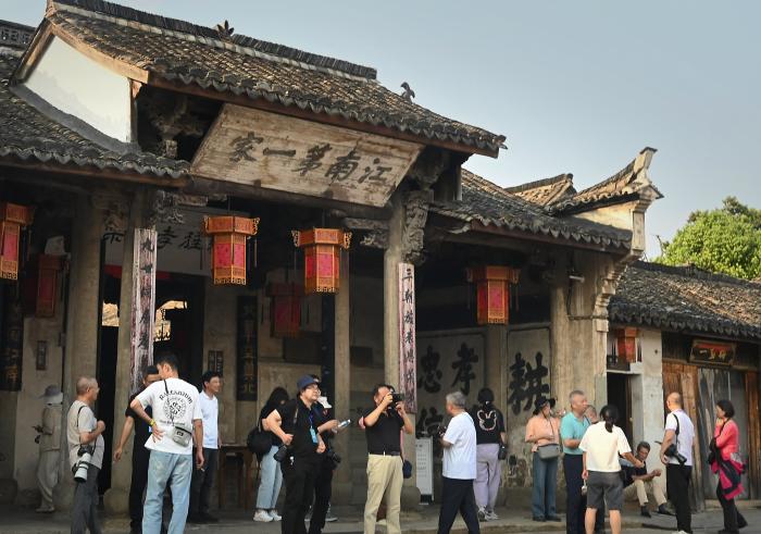 郑义门古建筑群以郑氏宗祠为中心,另有十桥九闸、东明书院遗址等建筑和古迹,是研究浙中地区古代建筑史的重要实物例证。2001年,郑义门古建筑群被公布为第五批全国重点文物保护单位。10月13日,游客在郑义门古建筑群参观。新华社记者 鲁鹏 摄