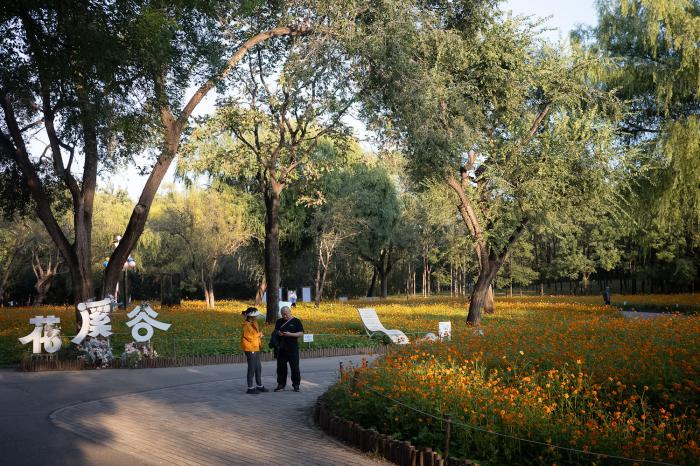 看北京|朝阳公园黄秋英花海盛放 游人穿梭小径欣赏秋景