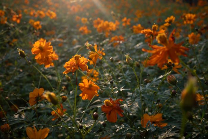 黄秋英又名硫华菊,属于波斯菊的一种,原产自墨西哥和巴西。花开的时候,黄秋英的花色由纯黄、金黄至橙黄连续变化,深浅不一。