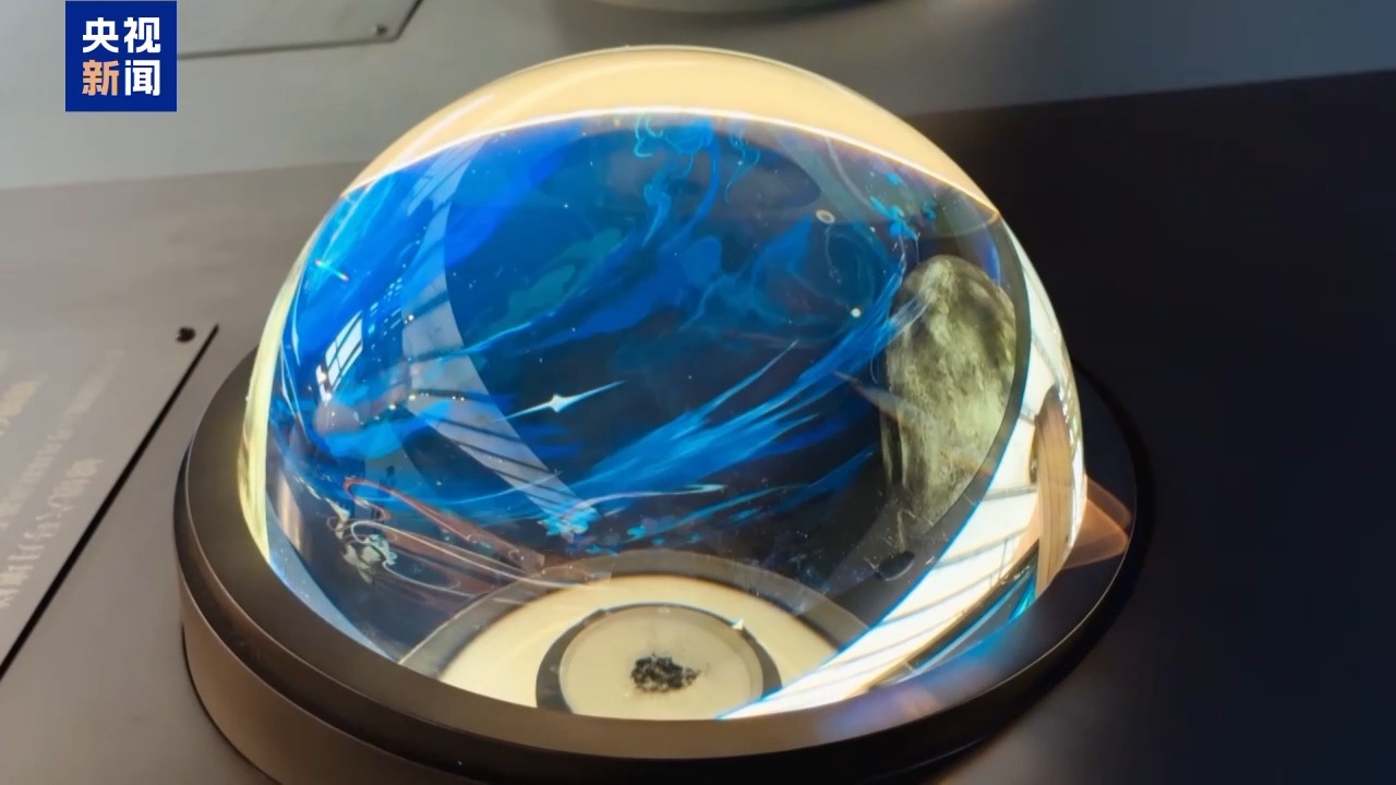 “九天揽胜”展区陈列了人类历史上首次采集的月壤样本,顶部以中国敦煌飞天图像再现悠久的美学传统。在古今交汇的语境中,生动诠释了“千古飞天梦,今日上九天”的宏大主题。