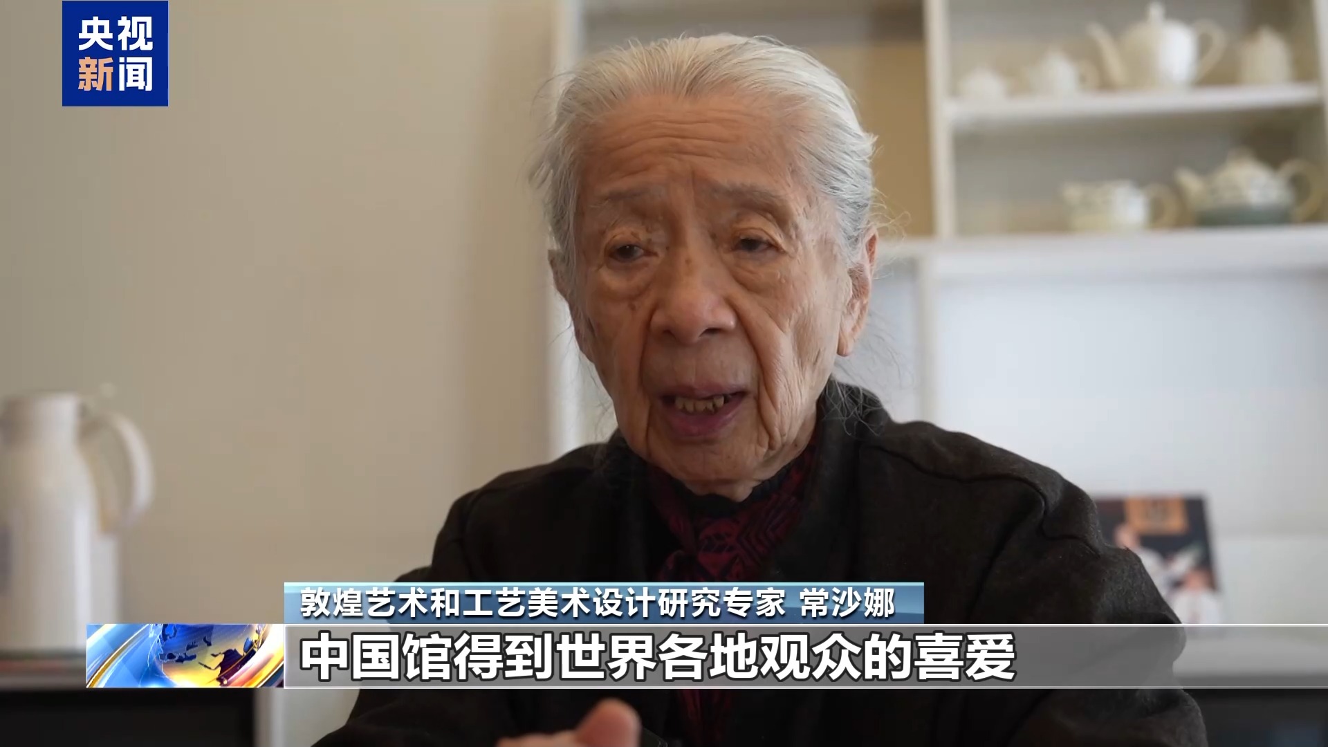 敦煌艺术和工艺美术设计研究专家 常沙娜:中国馆得到世界各地观众的喜爱,我很高兴。更珍贵的是,敦煌莫高窟里的艺术瑰宝能够通过当代的语言重新叙述给世界听。