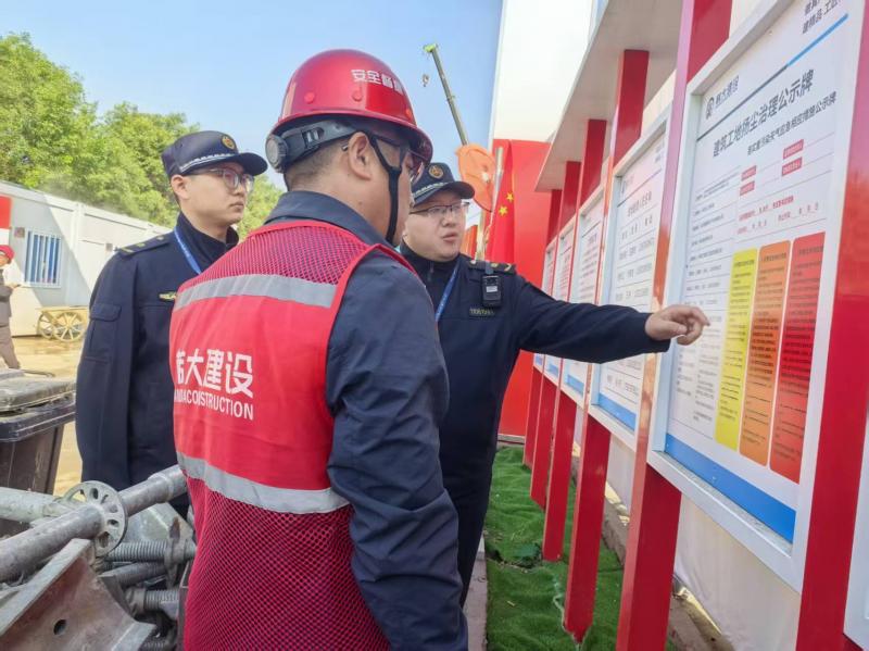 随后,执法人员又对工地四周的喷淋设施等各项防尘措施进行检查,并根据季节特点,提出相关工作要求:“咱们在施工时一定要保证湿法作业,对于工地基坑及围挡四周的喷淋设施也要按时启动,避免引起施工扬尘。”执法人员要求,针对正在出土的作业区要使用移动炮雾机,防止操作过程中产生扬尘。
