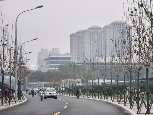 此次通车路段全长428.52米,涵盖道路、交通、绿化、照明、排水及拆改移等多项工程。朝阳区城市管理委市政基础设施科蒙琳介绍,施工过程中,项目采用“政企配合、路绿协同”模式,在道路北侧同步实施绿化美化工程,通过精细化配置绿化群落、点缀彩叶与开花植物,实现道路功能性与观赏性的有机统一。同时,道路还串联起沿线公园绿地,构建连贯的生态景观廊道,让周围居民实现了“推窗见绿、出门入园”。