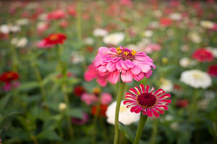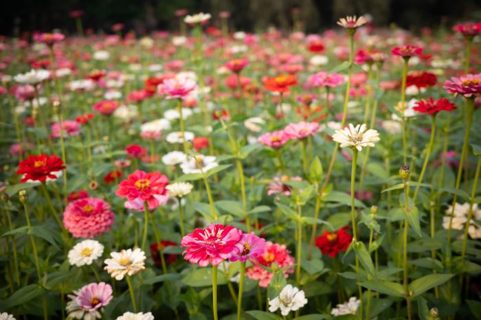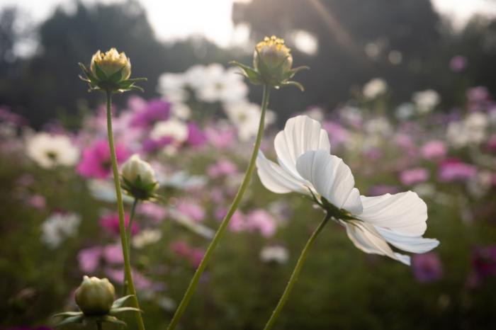 各色波斯菊交织,宛如一幅绚丽的画卷。