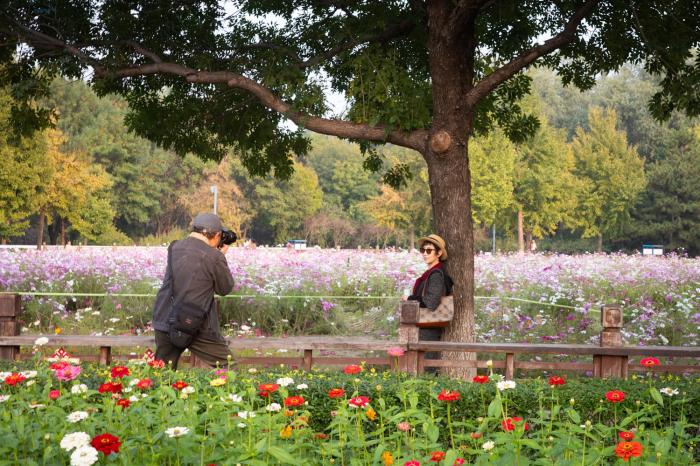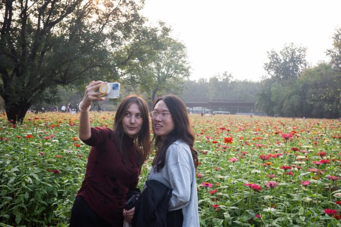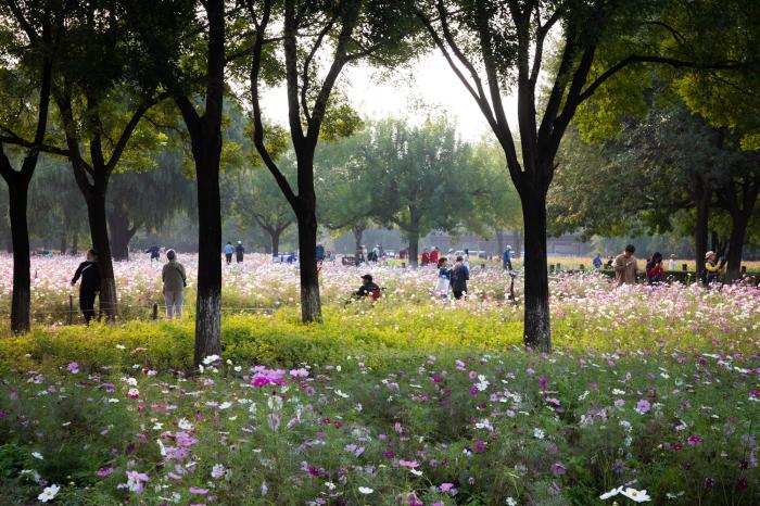看北京|奥林“花田野趣”成秋日顶流 青年打卡油画级秋景