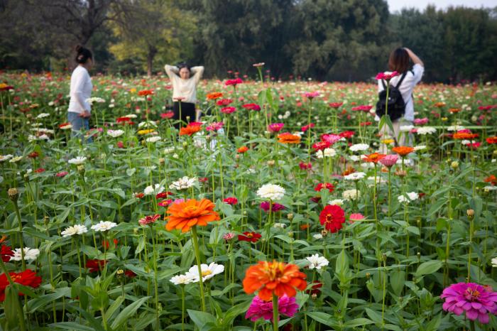 视点|游人打卡奥森“花田野趣” 乐享秋日时光