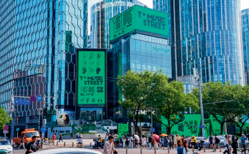通盈中心音乐街区全面打通文化体验与消费场景,整个音乐街区配合北广场大阶梯及三块电子屏幕的联动。通盈中心元宇宙商业综合体作为北京首个拥有三块户外大屏的商场,步入全国城市级地标性户外媒体矩阵。通过空间改造、外立面提升和线上生产场景投放,引入以新青年文化厂牌北京首店为代表的多家摩登潮奢品牌和特色业态,打造线上线下科技消费体验为一体的商业项目,实现片区商业串联。