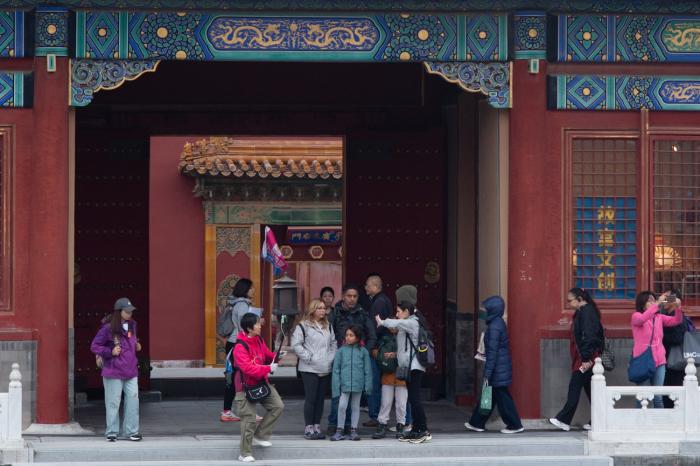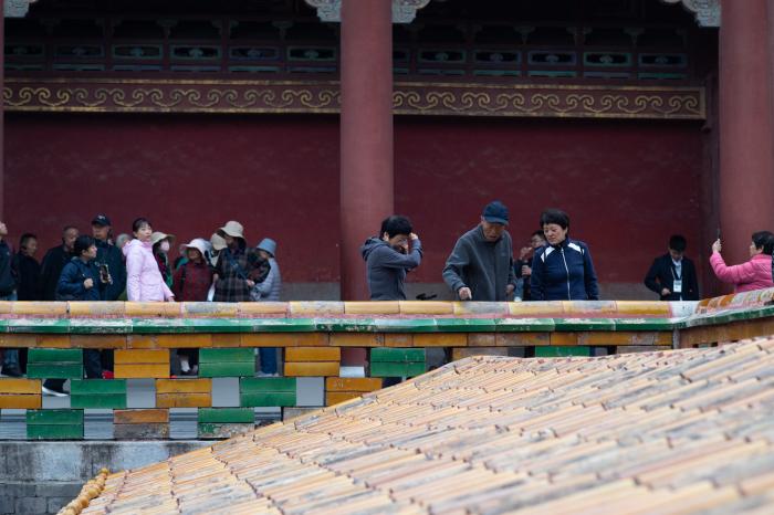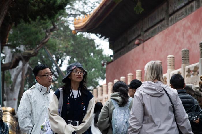 视点|北京迎降雨降温天气 游客厚装游故宫