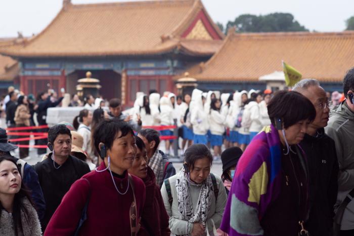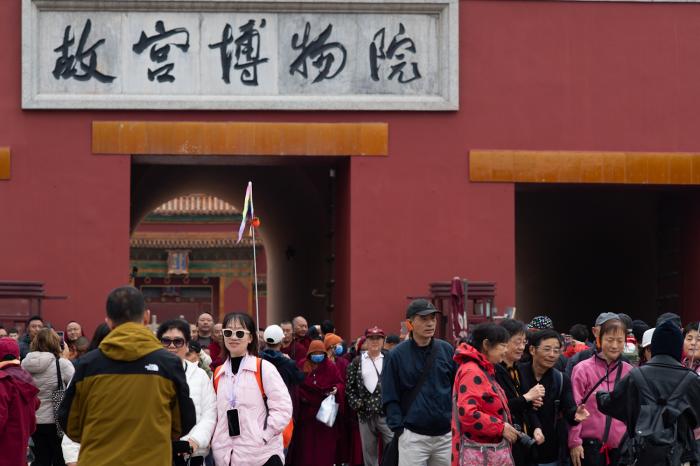10月16日北京阴雨持续。今天北京最高气温将降至16℃,湿凉感明显。游览故宫博物院的游客也穿起了冲锋衣、薄羽绒等御寒秋装。