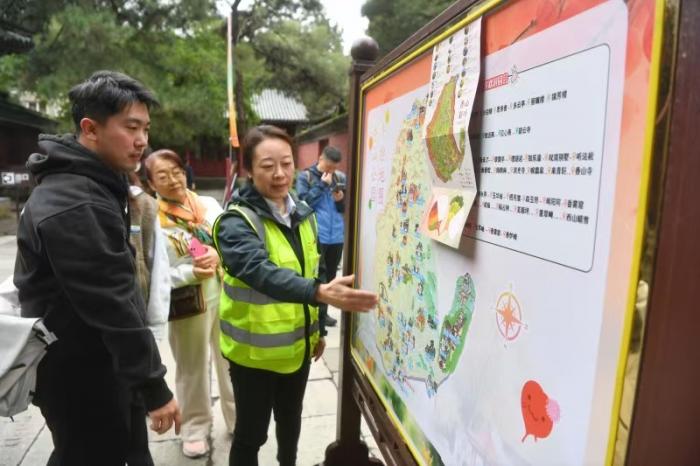 开幕当天,香山公园与延庆区六大赏红片区首次开展跨区域联动推广活动。在致远斋景区内,不少游客驻足咨询。