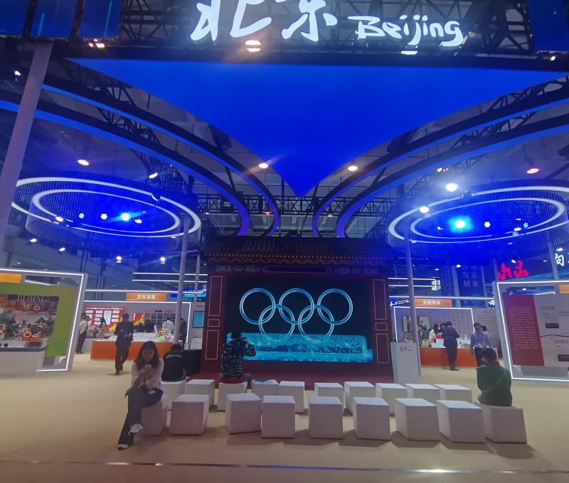 北京展区面积达360平方米,共汇集万达、北京出版集团等13家北京头部文化企业进行展示,展出各类版权作品2000余件,展示重点版权项目15个,其中不乏“AI智学伴”、可灵AI等前沿技术应用类版权项目。