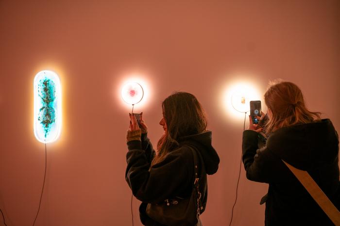 10月17日,在捷克首都布拉格,人们欣赏灯光装置作品。