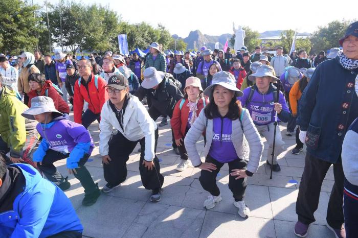 参加徒步的群众正在准备出发。