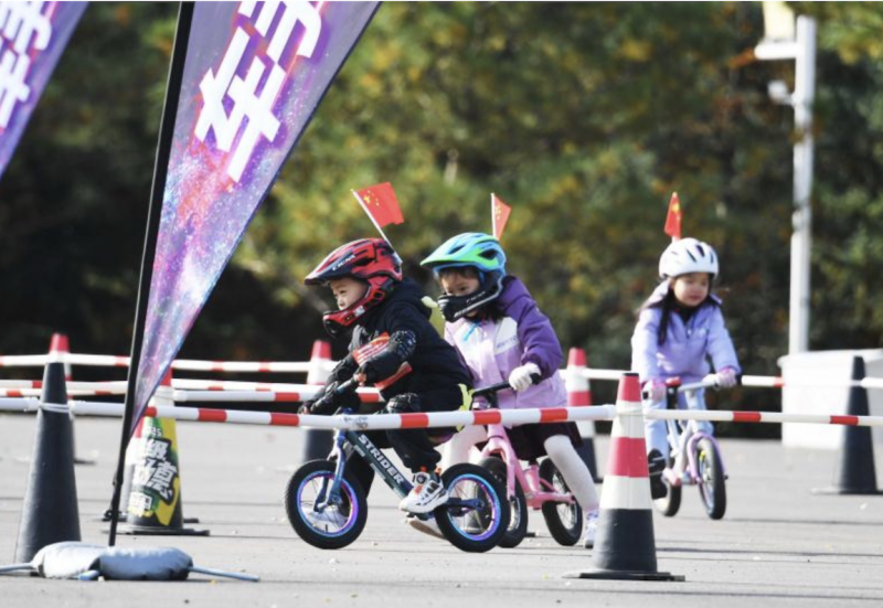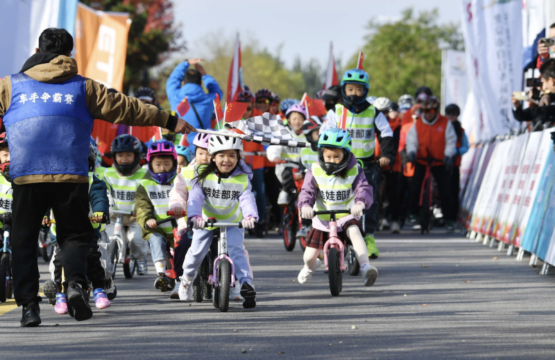 除了紧张激烈的比赛,活动现场还设置了儿童平衡车骑行活动,百余名孩子戴着色彩鲜亮的头盔,在家长的鼓励下沿着专属赛道骑行,清脆的笑声与秋日的微风交织,营造出浓厚的全民参与、共享幸福的氛围。