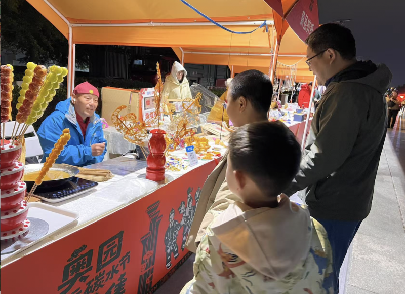 “踏月集”非遗慢闪专区为碳水节注入浓厚文化底蕴。专区特邀全国十几个省市的20位非遗传承人,带来龙泉青瓷、蔚县剪纸两项联合国人类非遗项目,以及景泰蓝、花丝镶嵌、雕漆、内画等11项国家级非遗项目。游客可亲手体验“铜与火的艺术”景泰蓝制作技艺,在京彩瓷釉上彩绘制中勾勒创意,在野王纻器填金技艺里感受传统工艺的精致。