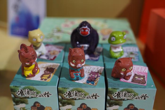 这是陶瓷博览会展区展出的文创作品(10月18日摄)。