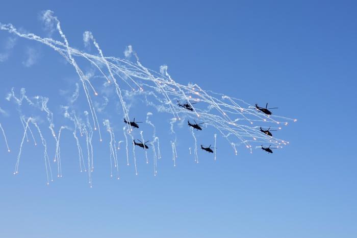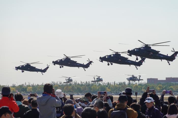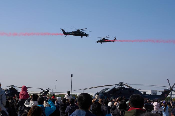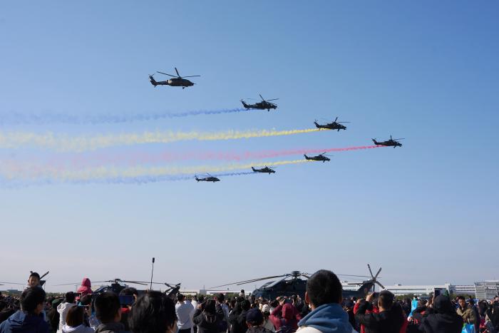 10月18日,第七届中国天津国际直升机博览会迎来公众开放日,陆军“风雷”飞行表演队进行特技飞行表演,为现场观众献上一场视觉盛宴。