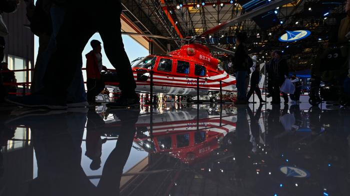 10月18日,观众在天津直博会直升机馆内参观。 10月18日,第七届中国天津国际直升机博览会迎来首个公众开放日。 新华社发(杜鹏辉摄)