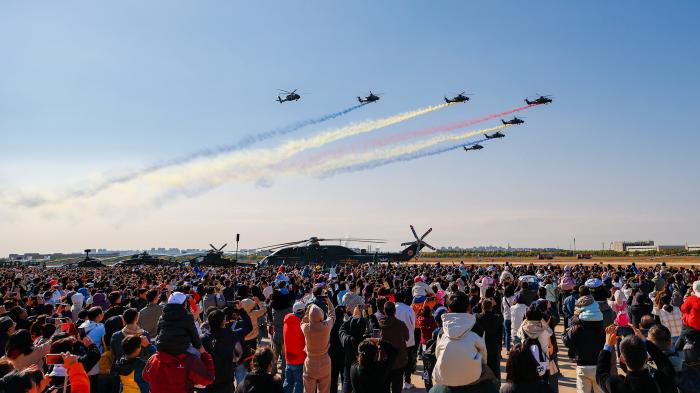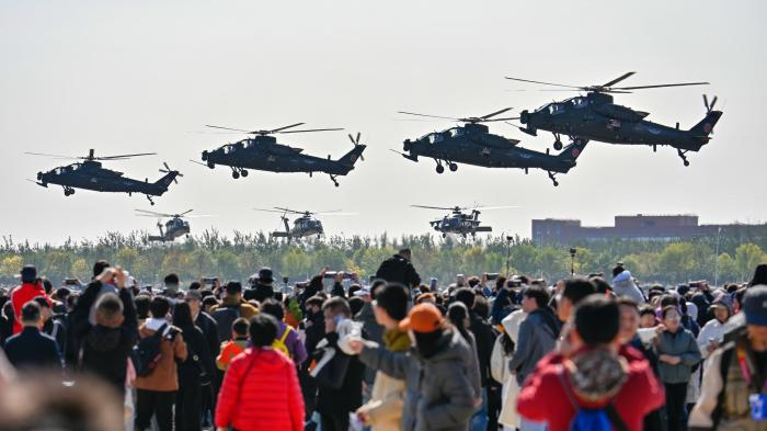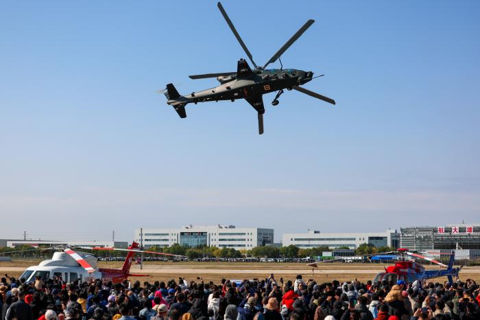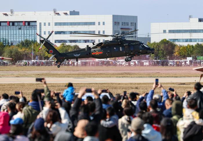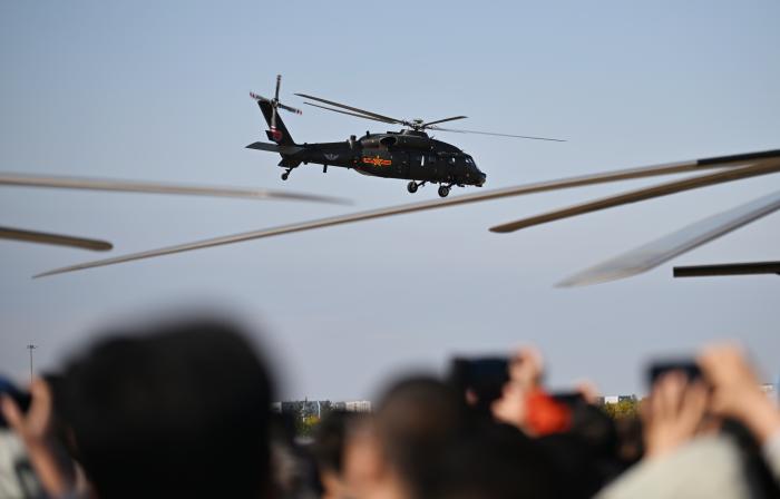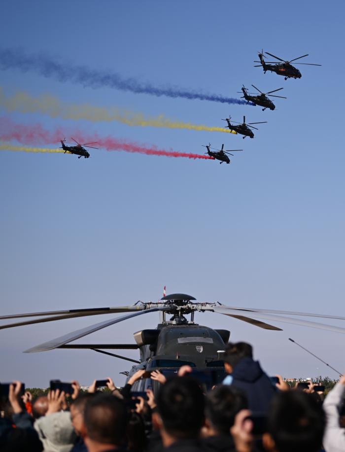 10月18日,观众观看直-20直升机飞行表演。新华社记者 孙凡越 摄