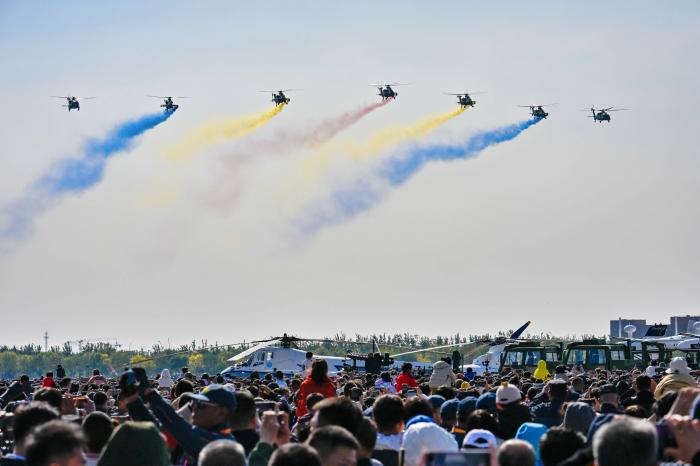 10月18日,观众欣赏直升机飞行表演。新华社记者 李然 摄
