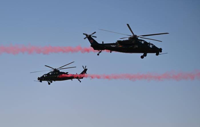 10月18日,直-10直升机进行飞行表演。新华社记者 赵子硕 摄