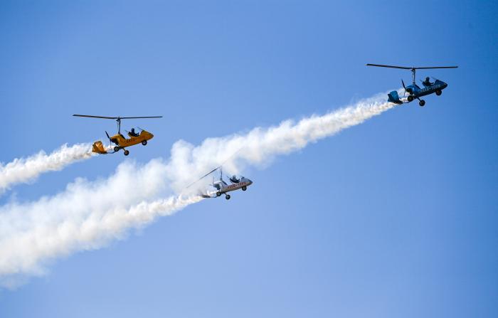 10月18日,旋翼机进行飞行表演。新华社记者 赵子硕 摄
