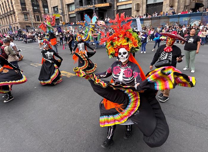 视界|墨西哥城举行亡灵节游行