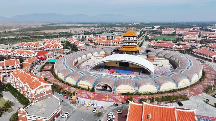 位于银川市永宁县闽宁镇的贺兰红酒庄(无人机照片,10月14日摄)。新华社记者 杨植森 摄