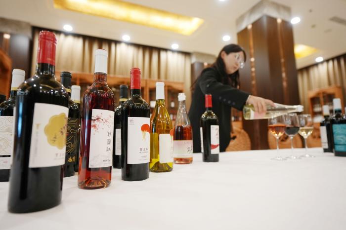 工作人员在银川市永宁县闽宁镇贺兰红酒庄品鉴厅为游客准备各类葡萄酒(10月14日摄)。新华社记者 王鹏 摄