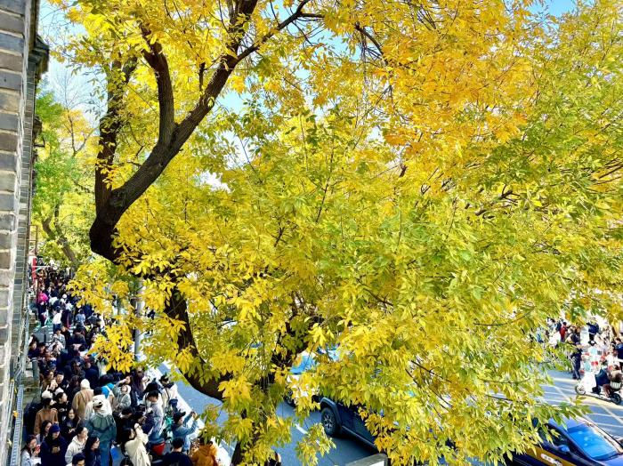 美丽北京|五四大街白蜡树金黄满枝 市民扎堆打卡
