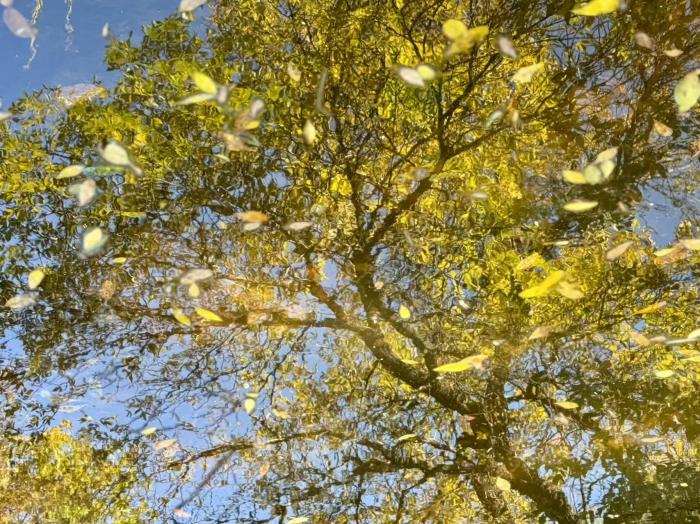 园内,苹香榭周边的树木褪去绿装,换上了金黄、橙红的斑斓外衣。阳光透过枝叶洒下,在地面形成斑驳的光影。湖畔的画架上,一幅色彩明艳的画作正悄然成型,颜料的绚丽与自然的秋景相互呼应,仿佛艺术与自然在此刻完成了一场美妙的对话。