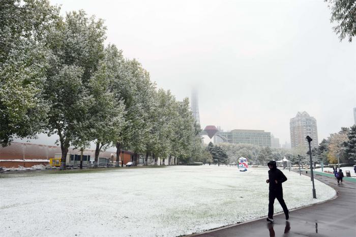 10月19日,哈尔滨市迎来降雪天气。