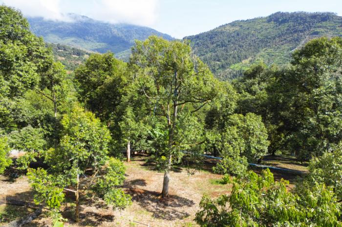 这是10月16日在马来西亚彭亨州劳勿拍摄的榴莲园(无人机照片)。新华社记者 程一恒 摄