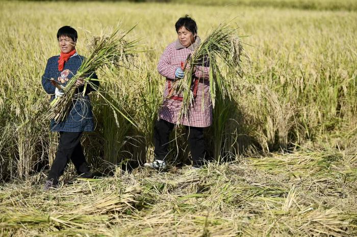 养水牛、种水稻是佃起村延续百年的传统。当天,庄园内金黄稻穗沉甸甸缀满枝头,微风拂过掀起层层稻浪。