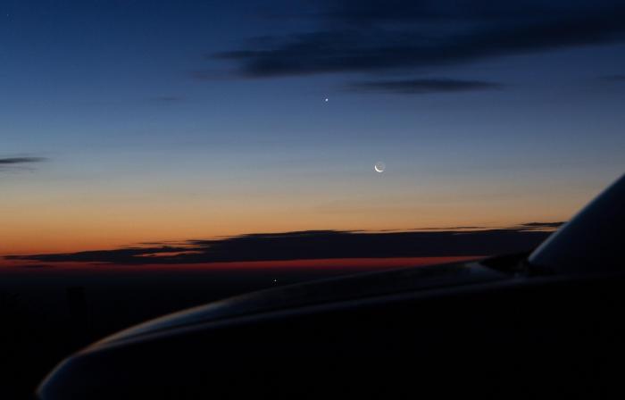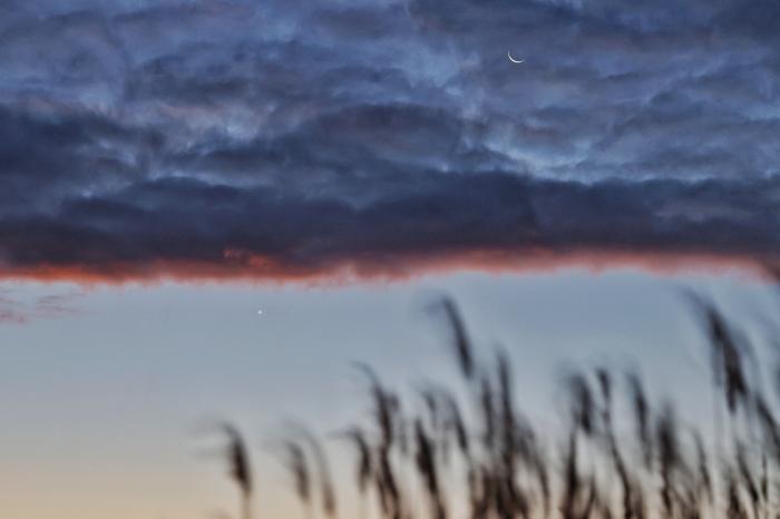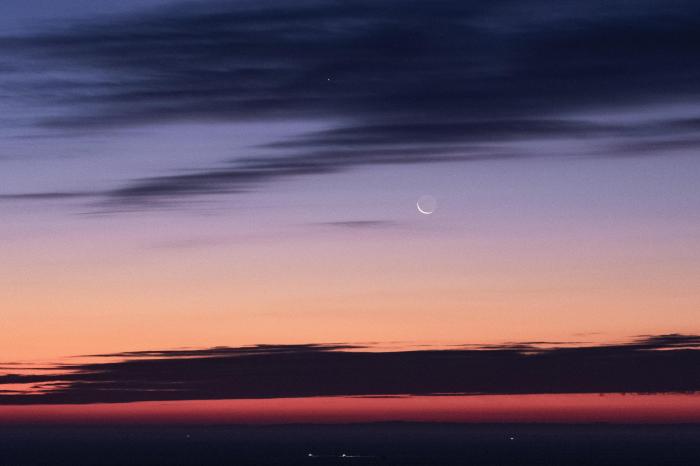 10月20日在黑龙江省富锦市拍摄的启明星伴月。