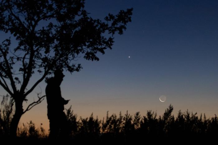 10月20日在黑龙江省齐齐哈尔市拍摄的启明星伴月。