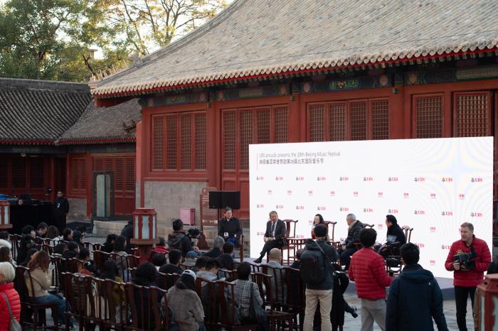 北京国际音乐节艺委会主席余隆为观众导赏。