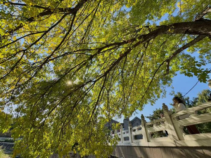 金黄树冠搭配古朴街景,站在东不压桥上拍摄视角最佳,随手就能拍出兼具历史感与秋意的画面。