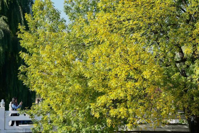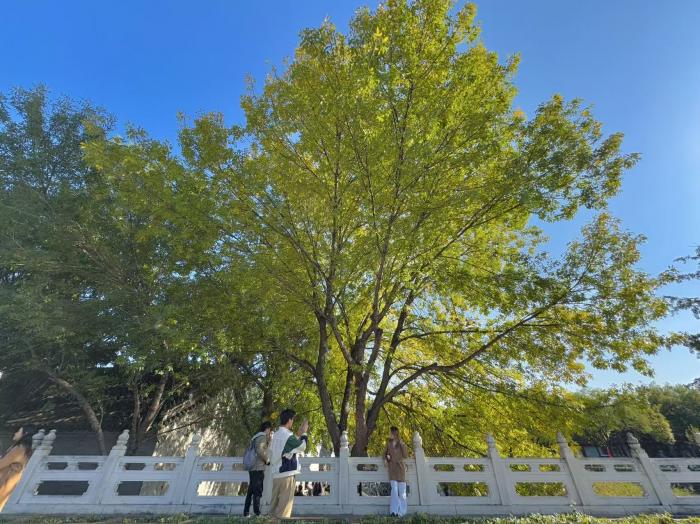 美丽北京|五四大街白蜡树金黄满枝 市民扎堆打卡