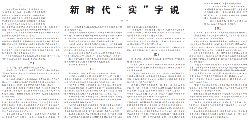 一段只有100多字的话,“实”字出现了10次:“大道至简,实干为要。新征程是充满光荣和梦想的远征,没有捷径,唯有实干。要脚踏实地,埋头苦干,不驰于空想,不骛于虚声;要笃实好学,尊重实际,不违背规律,不盲目蛮干;要求真务实,注重实效,不做表面文章,不耍花拳绣腿。为者常成,行者常至,历史不会辜负实干者。我们靠实干创造了辉煌的过去,还要靠实干开创更加美好的未来。”