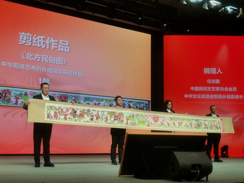 当天,非遗传承人田丽的京绣作品《大吉》、唐晟炜的邮票画《梅兰竹菊》、崔粲然的毛猴作品《学习宪法》、任志国的剪纸作品《北方民俗图》等均捐赠入藏首图。另有非遗传人和文化机构向首都图书馆捐赠了珍贵的纸质文献、数字资源等。