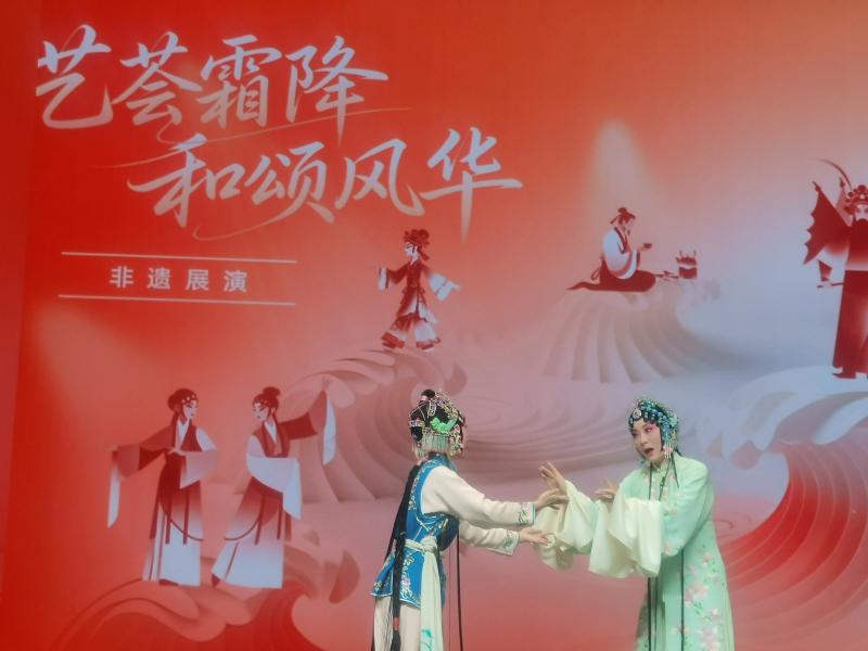 场内,非遗特色专场演出则荟萃京津冀三地特色项目,昆曲、管子、京东大鼓演奏相映生辉;津派对口相声、独弦琴,以及蒙古族四胡、长调的草原风情,共同交织出一幅多元文化和谐共生的图景。北京文化遗产研究中心主任王铭在不同节目之间穿插介绍相关非遗知识,为观众打造出丰盛、紧凑、兼顾知识性与娱乐性的文化体验。