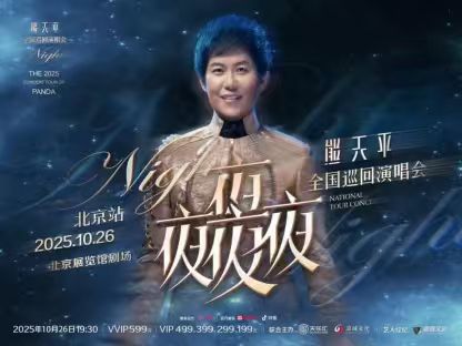 熊天平《夜夜夜夜》世界巡回演唱会北京站将于2025年10月26日在北京展览馆剧场举办。十年前,熊天平在北京展览馆的舞台上,用清澈温柔的嗓音点亮了无数乐迷的夜晚。当时他的师兄齐秦作为特邀嘉宾助阵,Marina杨洋作为亲情嘉宾同台,共同书写了音乐与情感的温暖篇章。十年后,他即将重回北展舞台,完成一场跨越十年的音乐重逢。