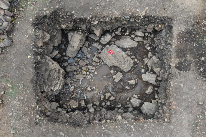 这是10月20日拍摄的位于黑龙江省海林市石河村的石人洞遗址的一处发掘区(无人机照片)。