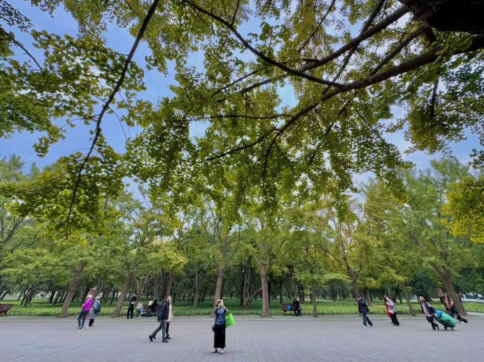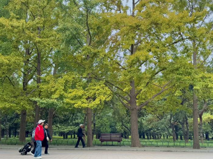 除核心观赏区外,东、西北外坛的银杏林也渐入佳境,步道两侧的银杏枝叶交错,漫步其间可尽享秋日静谧。
