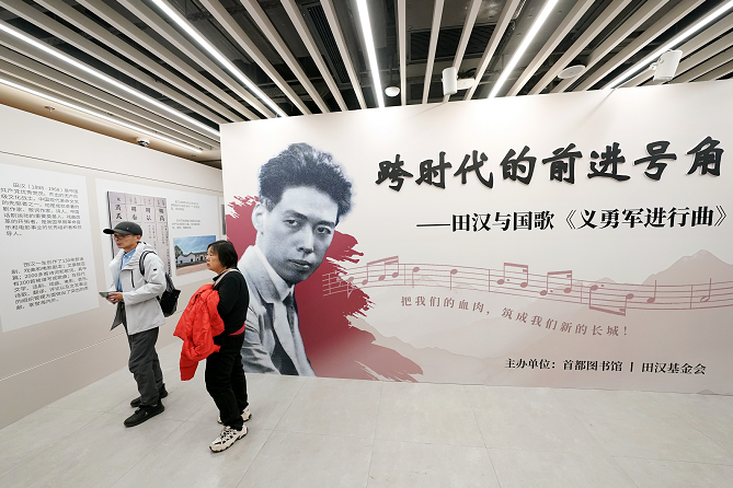 10月21日,“跨时代的前进号角——田汉与国歌《义勇军进行曲》”主题展览在北京城市图书馆大观厅正式开幕。展览以纪念《义勇军进行曲》诞生九十周年为契机,汇集逾百张珍贵历史照片与实物,清晰呈现词作者田汉的艺术探索历程,并翔实还原《义勇军进行曲》从电影剧本中的诗行到国家象征的非凡轨迹。