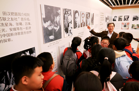 展览期间,主办方策划了导览、访谈与专题讲座等活动。10月21日开幕导赏由田汉之孙、田汉基金会秘书长欧阳维主讲,结合重点照片及展品解读田汉生平与国歌故事。10月24日推出的“红色故事我来讲”系列访谈,欧阳维将聚焦田汉与戏剧大师欧阳予倩等艺术家的深厚情谊,解析他们的创作理念。“薪火讲堂”讲座则系统梳理了国歌发展脉络,并依据文献澄清了流传甚广的谬误:歌词并非创作于狱中或写在香烟盒上,而是1934年底,田汉在上海寓所伏案完成于十行红格稿纸。