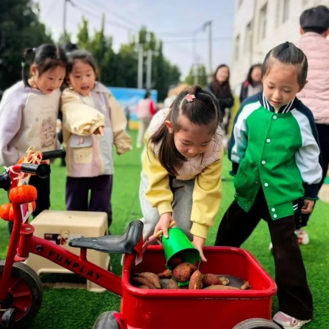 小菜园的“田间挖宝”区充满了孩子们的欢声笑语。一双双小手在泥土中探寻。在“秋日小能手”区域,孩子们认真体验为谷物去皮的工序,在亲手劳作中体会“粒粒皆辛苦”的真谛。